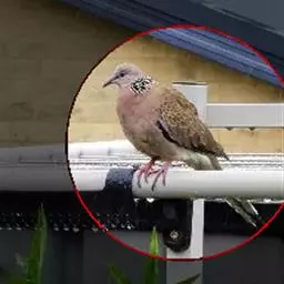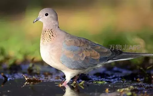 欧斑鸠体长27厘米,是一种体型略小的粉褐色斑鸠。颈侧具多黑白色细纹的斑块,翼覆羽深褐,…