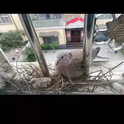 该物种的繁殖季节因地区而异。通常在4-10月。或许1年繁殖2-3窝。通常成对或成小群在一起营巢繁殖,多营巢于村前屋后树上或公园和果园中的树上,高于地面15米左右。也在竹林、灌从和建筑物上以及废弃的房屋中营巢,亦经常营巢于房屋的阳台、排水管、墙壁上或房檐下。有时直接营巢于裸露的地上。巢呈浅盘状,甚为简陋,主要由枯枝堆集而成,结构甚为松散粗糙。每窝产卵2枚,卵白色,呈卵圆形,大小为23-29毫米×18-21毫米。