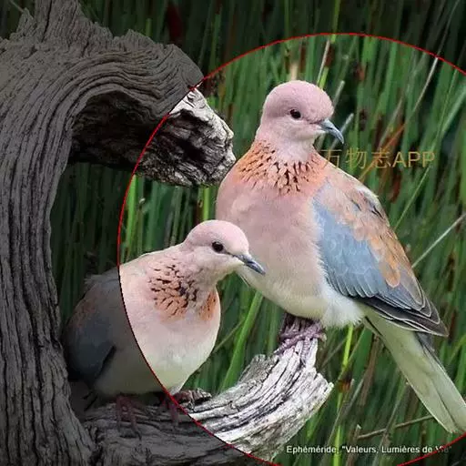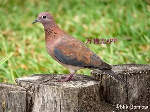 棕斑鸠,是鸽形目鸠鸽科斑鸠属鸟类。整个头和颈淡粉红色,头顶和前额较暗,颊、喉较淡,…