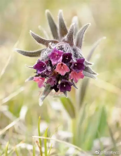 软紫草〔拉丁学名:Arnebia euchroma (Royle)Johnst.〕,1959年中国植物志将新疆紫草正名为:软紫草。 软紫草是紫草科,软紫草属多年生草本植物。有硬毛或柔毛。根含紫色物质。茎直立或铺散,茎高可达25厘米,叶互生,基生叶披针状条形或条形,花絮为镰状聚伞花序,近球形,密生多数花;苞片条状披针形或条形,比花短;花冠紫色,筒与萼近等长,基部无环,檐部钟状,喉部无附属物,小坚果卵形,有疣状突起。