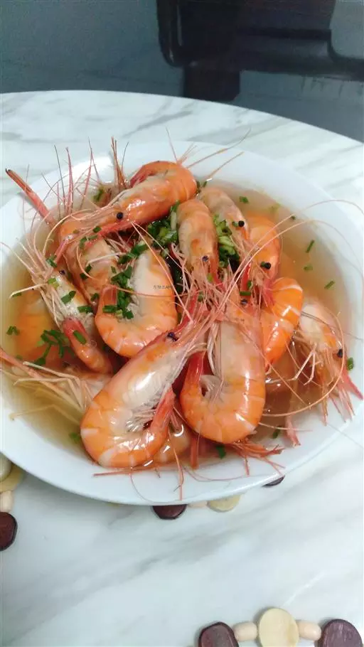 厨师一点通:这道菜适合用中等个头的虾,如基围虾、青虾、草虾等,个头太大的虾不容易入味。