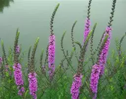 千屈菜是千屈菜科千屈菜属的多年生草本植物;根茎粗壮;叶披针形或宽披针形,无柄;花序簇生,呈聚伞状,…