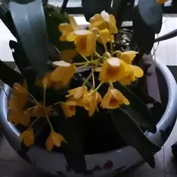 黄石斛(学名:Dendrobium tosaense Makino):茎直立或下垂,多少肉质,细圆柱形,不分枝,具多数节。叶革质,长圆状披针形,基部稍歪斜并且扩大为抱茎的鞘。总状花序从具叶或落了叶的老茎上部发出,通常具2-5朵花;花黄绿色,后来转变为乳黄色,开展;花瓣长圆形,长1.4-1.6厘米,宽4-6毫米,先端锐尖,具5-7条脉;唇瓣椭圆状菱形,不裂。花期4-5月。