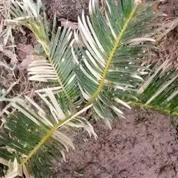 叶片形状 果然,在山脚下的一片地里,记者拨开掩盖在上面的荞麦苗,找到了被移栽的德保苏铁。据村民们说,移栽德保苏铁的是村里的两家人,记者找到了其中一家,在屋顶上也看到了被移栽的十几株德保苏铁。面对记者所提出的“为什么要移栽苏铁”的问题,这位叫李荣灿的村民有些闪烁其词,但记者看得出,他丝毫没有意识到自己的做法将会给这种濒危的植物带来什么样的影响。