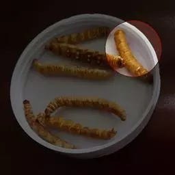 斗米虫为锈色粒肩天牛的幼虫,锈色粒肩天牛主要危害槐树Sophora japonica,…
