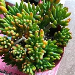 玉米石是景天科、景天属植物。多年生草本多浆植物。植株低矮丛生,多分枝。叶膨大成圆筒形、卵形或近小球形,…