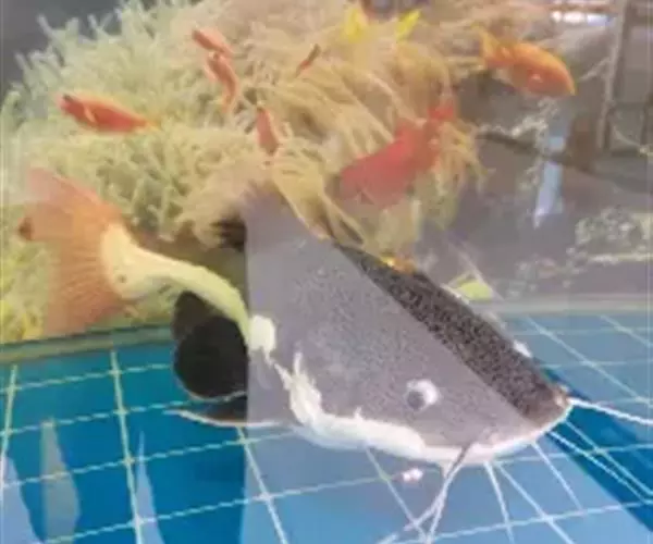 红尾鲶同种类之间有撕斗现象,胡须容易被打断,但很快会恢复。