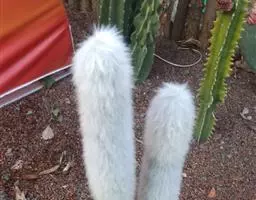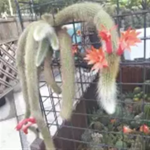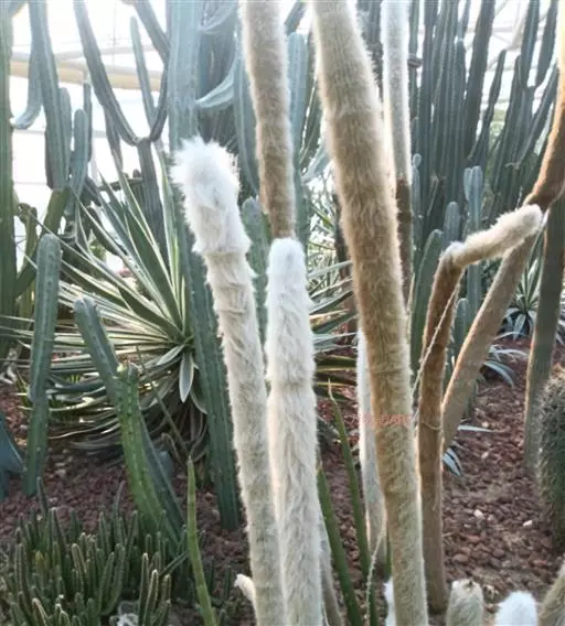 仙人掌科管花柱属,茎细圆柱状,高1.5m,粗6~7cm,有棱30。刺座密生,有白色刺毛状刺30~40,刺长1.5cm,有4根黄色的粗刺。春夏开花,花红色,浆果小球形。种子黑色。
