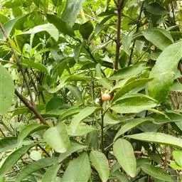 常绿灌木或小乔木。叶椭圆形,两端尖。果扁圆形,朱红色;味甜,可食。产自中国东南部,广东地区大量盆栽。
