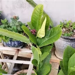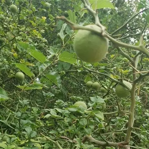 香橼为小乔木或灌木状;株高达5米;幼枝、芽及花蕾均暗紫红色;茎枝多刺,长达4厘米;单叶,…