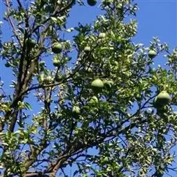 柚子树又名“文旦”“栾”“抛”。芸香科。常绿乔木。叶大而厚;叶翼大,呈心脏形。花大,常簇生成总状花…