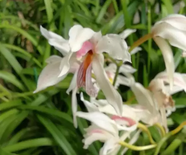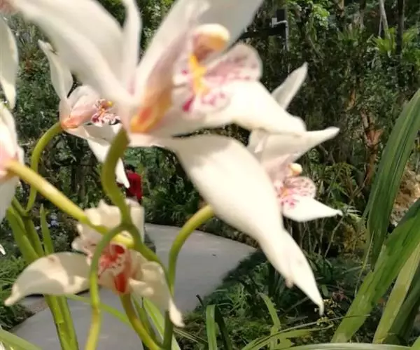 独占春(学名:Cymbidium eburneum Lindl.):附生植物;假鳞茎近梭形或卵形,包藏于叶基之内,基部常有由叶鞘撕裂后残留的纤维状物。叶6-11枚,每年继续发出新叶,多者可达15-17枚。花葶从假鳞茎下部叶腋发出,直立或近直立;总状花序具1-3朵花;花较大,不完全开放,稍有香气;萼片与花瓣白色,有时略有粉红色晕,唇瓣亦白色。