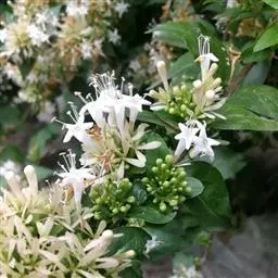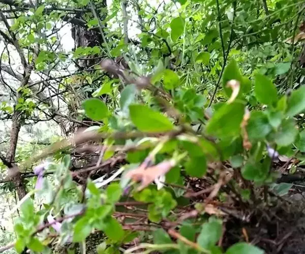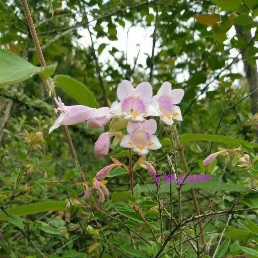 蓪梗花 落叶灌木,高1-2米;幼枝红褐色,被短柔毛,老枝树皮条裂脱落。叶圆卵形、狭卵圆形、菱形、狭矩圆形至披针形,长1.5-4厘米,宽5-15毫米,顶端渐尖或长渐尖,基部楔形或钝形,边缘具稀疏锯齿,有时近全缘而具纤毛,两面疏被柔毛,下面基部叶脉密被白色长柔毛;叶柄长2-4毫米。