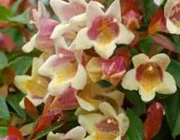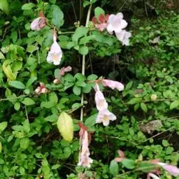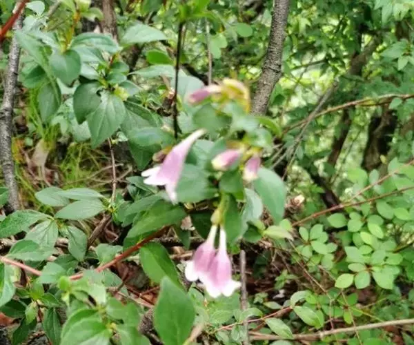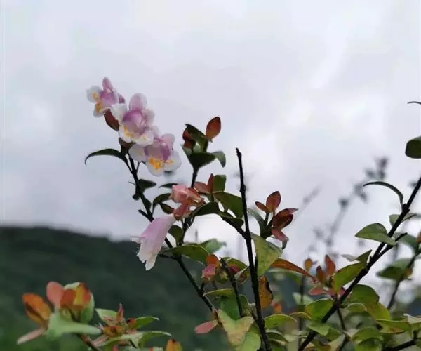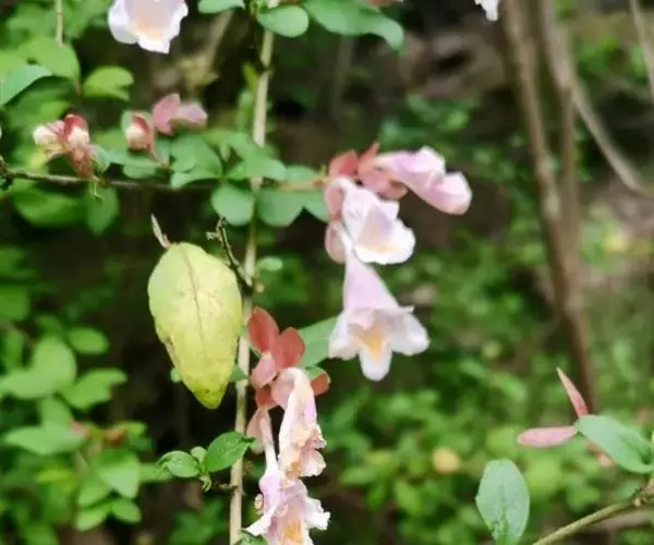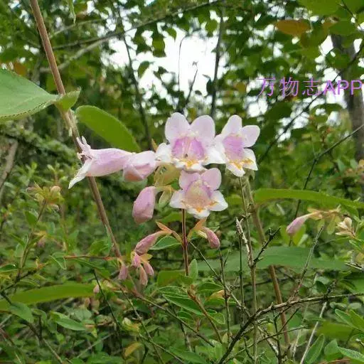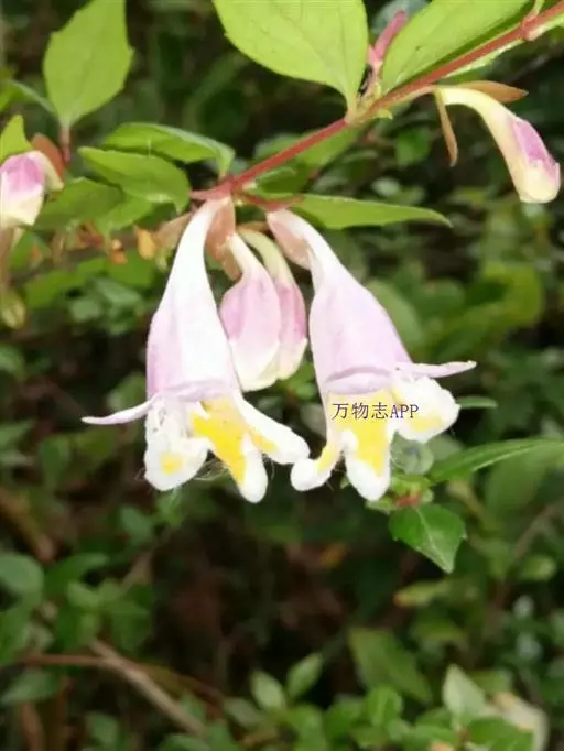 蓪梗花(学名:Abelia engleriana (Graebn.) Rehd. )是忍冬科,六道木属落叶灌木,高可达2米;幼枝红褐色,老枝树皮条裂脱落。叶片圆卵形、狭卵圆形、菱形、狭矩圆形至披针形,花生于侧生短枝顶端叶腋,萼筒细长,裂片椭圆形,花冠红色,狭钟形,花药长柱形,花丝白色;柱头头状,果实长圆柱形,5-6月开花,8-9月结果。