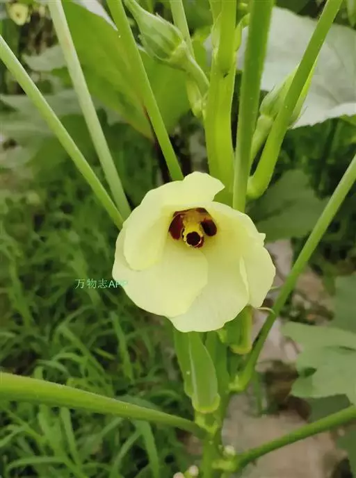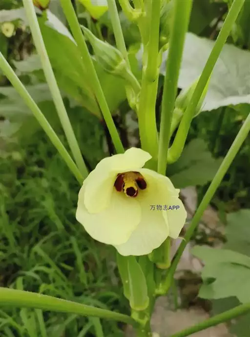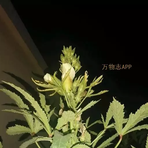 咖啡黄葵 Moench)亦称黄秋葵,是锦葵科一年生草本植物。茎圆柱形,疏生散刺。叶掌状,裂片阔至狭,…