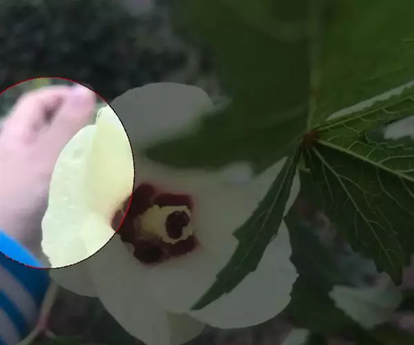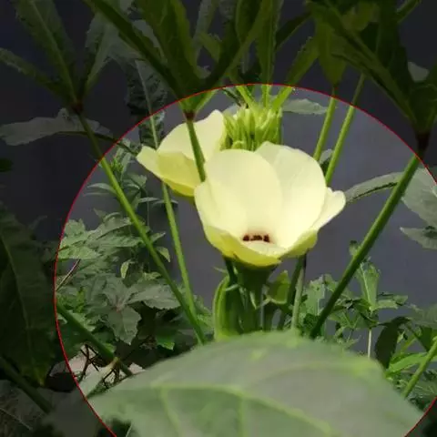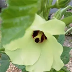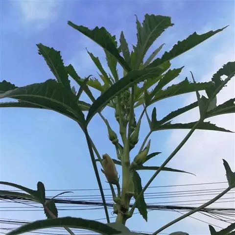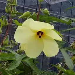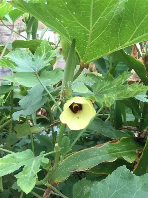 咖啡黄葵(学名:Abelmoschus esculentus (Linn.)Moench)亦称黄秋葵,锦葵科一年生草本植物。茎圆柱形,疏生散刺。叶掌状,裂片阔至狭,托叶线形,被疏硬毛。花单生于叶腋间,花梗疏被糙硬毛,小苞片钟形;花萼钟形,密被星状短绒毛;花黄色,内面基部紫色,蒴果筒状尖塔形,种子球形,具毛脉纹。花期5-9月。