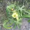 花单生于叶腋间,花梗长1-2厘米,疏被糙硬毛;小苞片8-10,线形,长约1.5厘米,疏被硬毛;花萼钟形,较长于小苞片,密被星状短绒毛;花黄色,内面基部紫色,直径5-7厘米,花瓣倒卵形,长4-5厘米。