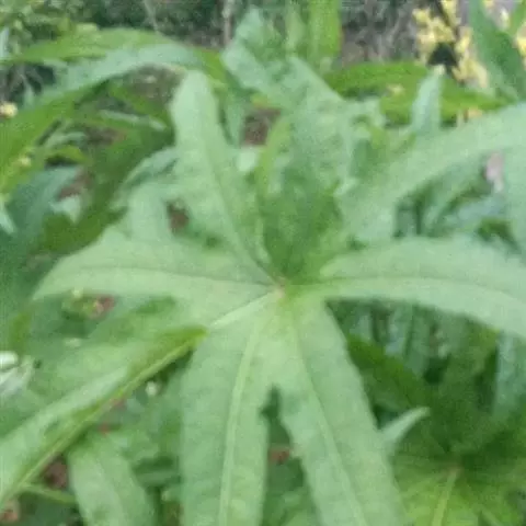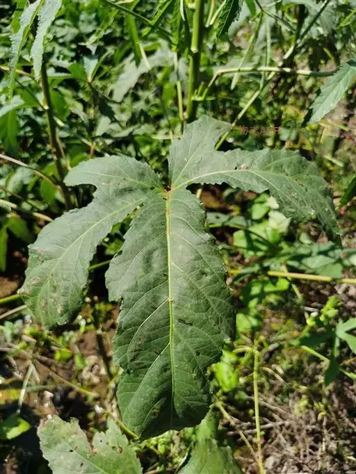 一年生草本,高1-2米;茎圆柱形,疏生散刺。叶掌状3-7裂,直径10-30厘米,裂片阔至狭,边缘具粗齿及凹缺,两面均被疏硬毛;叶柄长7-15厘米,被长硬毛;托叶线形,长7-10毫米,被疏硬毛。