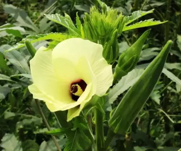 开花结果期:从始花到采收结束,约需85-120天。出苗后需50-55天,第一朵花即开放。第一二朵花从开花到收获所需天数稍长。以后随温度升高,收获时间缩短。通常播种后70天左右即可第一次采收。在昼温28-32℃,夜温18-20℃适温下开花后4天即可收获。黄秋葵开花结果后生长速度加快,长势增强,尤以高温下生长更快,7月每3天即展开一片真叶,9月则需4-5天展开一片真叶。