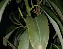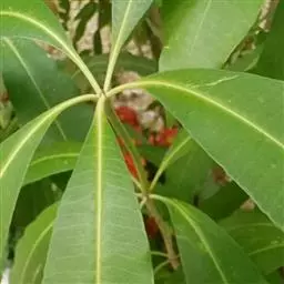 叶不整齐互生,在顶端3-6片近轮生或松散簇生,革质,厚革质,倒卵状椭圆形,倒披针形或椭圆形,长5-15厘米,宽2-5厘米,先端骤尖或短渐尖,基部渐狭或楔形;在阳光下可见密布透明油点;中脉在叶上面稍凹下,在下面隆起;叶柄长8-20毫米。