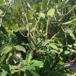 ④修剪定干:八角幼林期的修剪是八角树能否形成丰产树冠的关键,当幼树长到1米高时应抹去顶芽或截顶,待新芽长至30厘米时选留2—3枝健壮、生长良好的枝条作主枝,其余枝条剪除。在以后的生长过程中,要剪除徒长枝、过密枝,促进侧枝的生长,使树冠呈长椭圆形丰产树冠发展。修剪时间应在春芽萌芽前进行。
