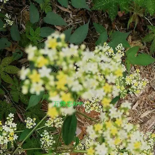 糙叶败酱( Patrinia rupestris Juss.subsp.scabra H.J.Wang),败酱科植物,多年生草本,茎丛生,茎上部多分枝,叶对生,裂片倒披针形、狭披针形或长圆形,聚伞花序顶生,呈伞房状排列,花小,黄色,花冠合瓣,果实翅状,卵形或近圆形,种子位于中央。