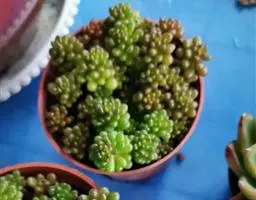 玉米石是景天科、景天属植物。多年生草本多浆植物。植株低矮丛生,多分枝。叶膨大成圆筒形、卵形或近小球形,…