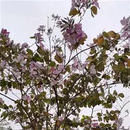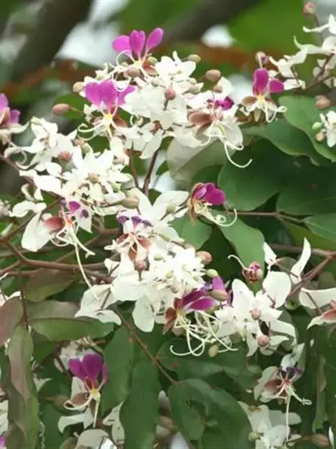 洋紫荆:落叶乔木;树皮暗褐色,近光滑;幼嫩部分常被灰色短柔毛;枝广展,硬而稍呈之字曲折,无毛。叶近…