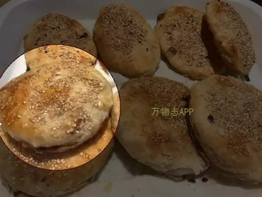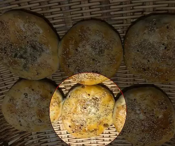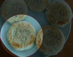 油酥烧饼 蒙城薛家烧饼重量约为一两的面粉经过和 面、醒面、掂面等工序做成“死面团”,然后拉成约三寸宽、1.5米长的“面皮”,抹上调配后的猪油,叠成20 多层的烧饼坯,经过上炉、烘烤等工序,一块透明流油、香气四溢的蒙城薛家烧饼成型了。再经做饼师傅用火剪在烧饼上适度地一挑,那块