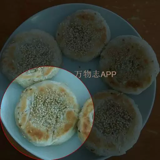 古面坊的烧饼 温县古面坊传统烧饼是历史悠久的传统面点之一,历史无法考证,烧饼使用的是农村常用老面,又名肥面、酵面起发,起发后再次接面再次起发,起发后就可以揪剂子,然后把剂子反复揉,把剂子揉的光滑后,再把剂子分出三分之一沾香料油(食用油、花椒粉、食用盐配制),大剂子擀开把沾香料油的小剂子包在大剂子里面,然后用刀开花,把开花的剂子研心。好了就可以上炉烤制了大约20分钟就可以出炉了,出炉后用白糖熬制的糖浆表面刷一层面,撒一层炒制的芝麻就可以了。我们这里结婚前订婚、小孩子报喜送烧饼作为点心,古面坊的烧饼纯手工制作,劲道有嚼头,好吃的不得了。