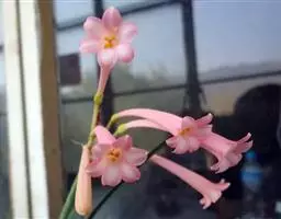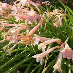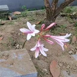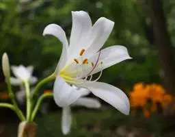 长筒石蒜草本,地生。鳞茎卵球形;叶披针形;伞形花序,有花5-7朵,花白色;花被裂片腹面稍有淡红色条纹,…