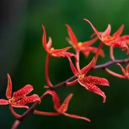 花序顶生,叉状分枝,每分枝的顶端聚生有数朵花;花梗细,长约1.5厘米;花梗及花序的分枝处均包有膜质的苞片,苞片披针形或卵圆形;花橙红色,散生紫褐色的斑点,直径4~5厘米;花被裂片6,2轮排列,外轮花被裂片倒卵形或长椭圆形,长约2.5厘米,宽约1厘米,顶端钝圆或微凹,基部楔形,内轮较外轮花被裂片略短而狭;雄蕊3,长1.8~2厘米,着生于外花被裂片的基部,花药条形,外向开裂,花丝近圆柱形,基部稍扁而宽;花柱上部稍扁,顶端3裂,裂片边缘略向外卷,有细而短的毛,子房下位,倒卵形,3室,中轴胎座,胚珠多数。