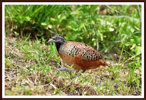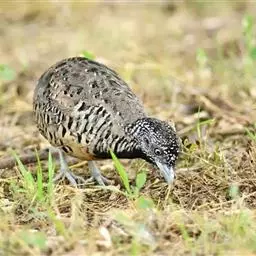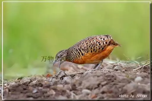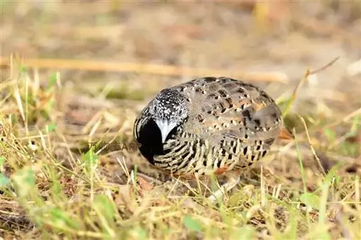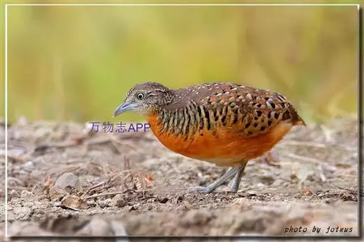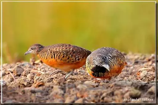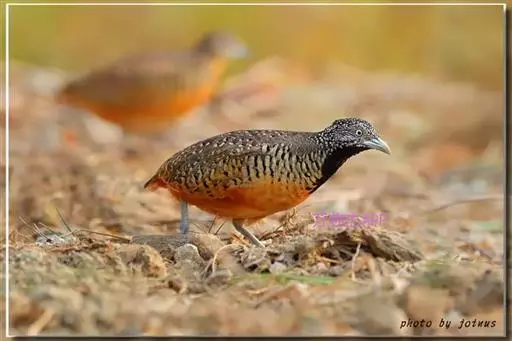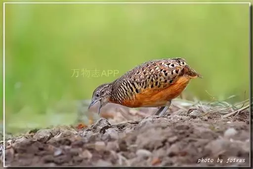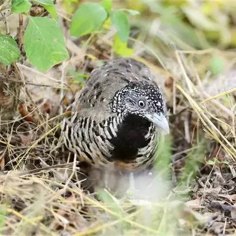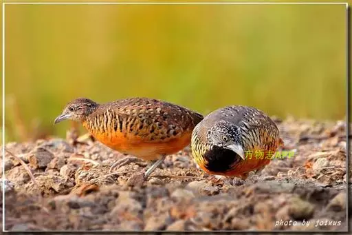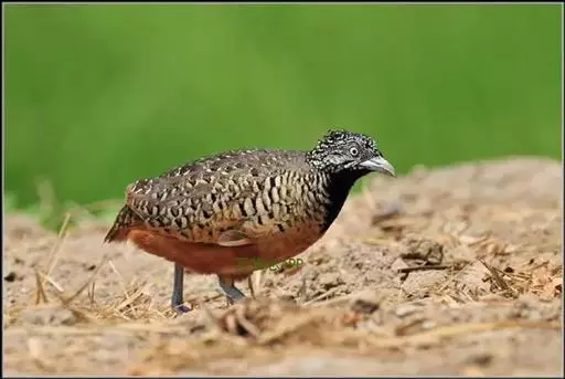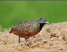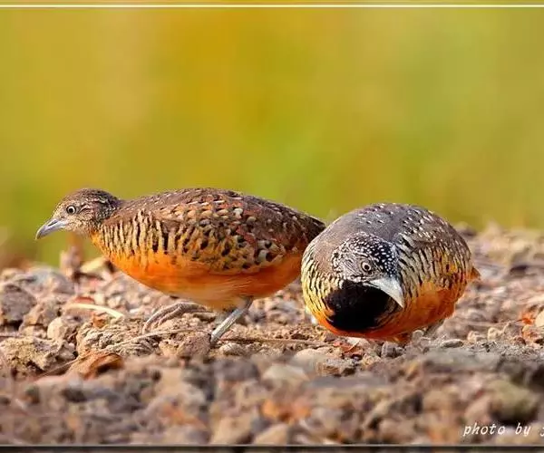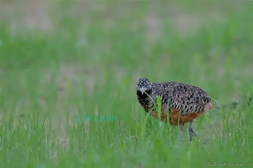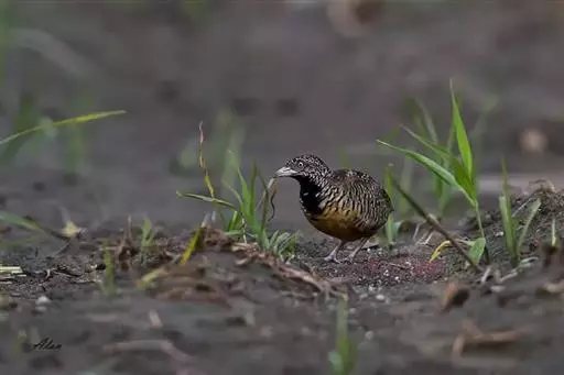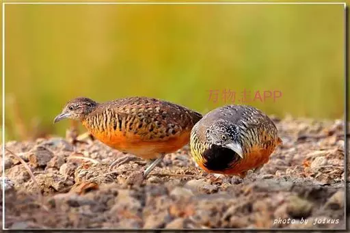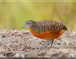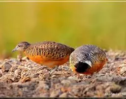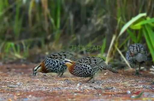 林三趾鹑(学名:Turnix sylvaticus)小型鸟类,体长11~15厘米。外形很像鹌鹑,但胸为棕黄色,两胁有黑色斑点,头具淡乳黄色中央冠纹。头两侧和喉白色,腹亦为白色。尾较尖,无后趾。相似种鹌鸫体型较大,脚具后趾,尾短,具白色眉纹,胸白色而不为棕色,两胁具栗色条纹,区别极明显,容易识别。