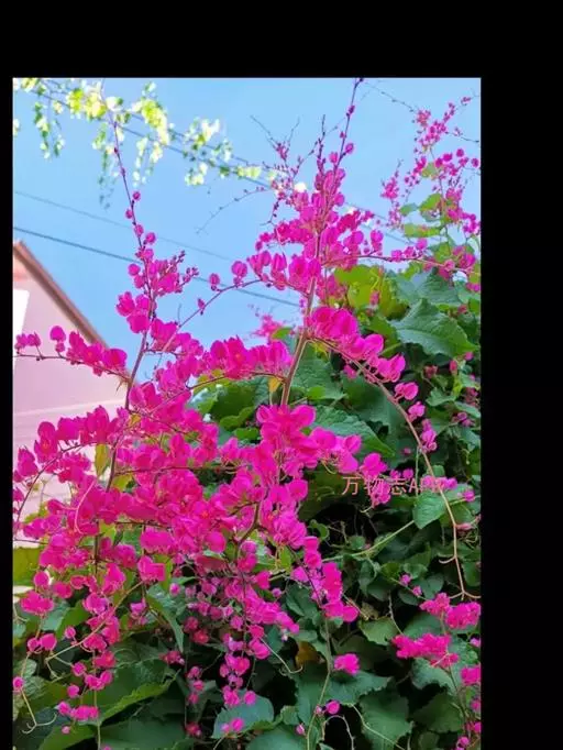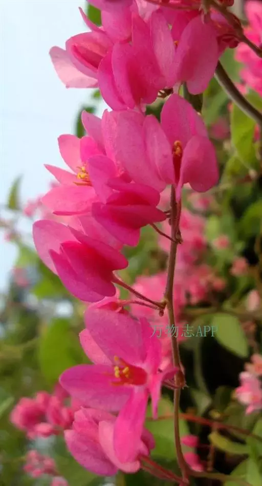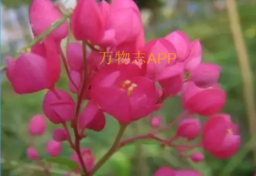 珊瑚藤(学名:Antigonon leptopus Hook. et Arn.)是蓼科珊瑚藤属植物,多年生攀援藤本,长达10米。茎自肥厚的块根发出,稍木质。叶有短柄;叶片卵形或卵状三角形。花序总状,顶生或腋生,花序轴顶部延伸变成卷须。瘦果卵状三角形,长约10毫米,平滑,包于宿存的花被内。