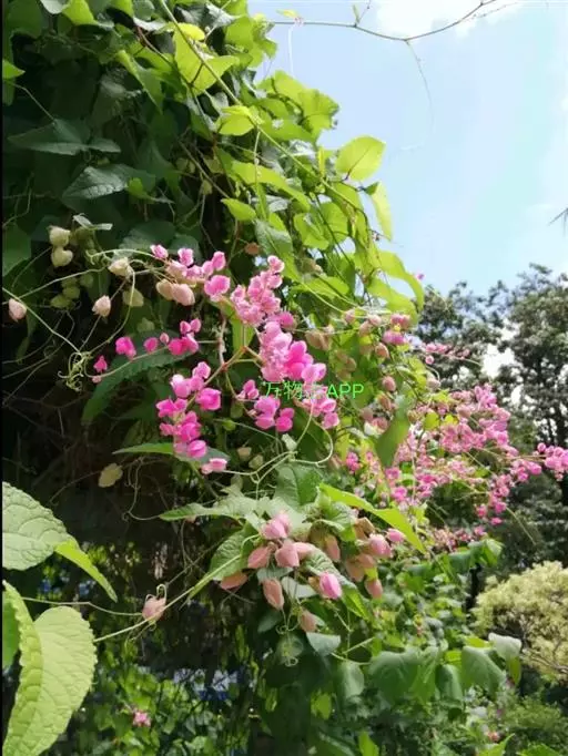 珊瑚藤花期极长,繁花满枝,美丽异常,被称为藤蔓植物之后。若攀援在树上,则满树粉红,让人分不清是树还是藤在开花。在园林中可用于凉亭、棚架、栅栏的绿化,也可植于坡面做地被植物,同时也是庭院垂直绿化的良好材料。