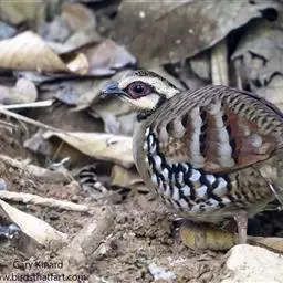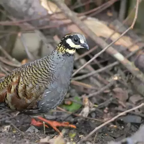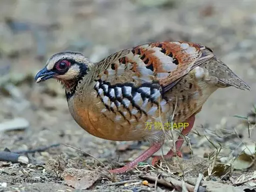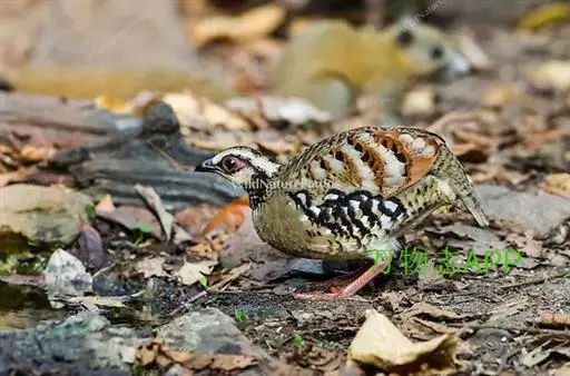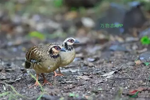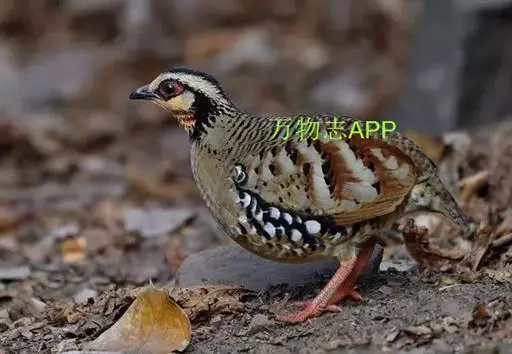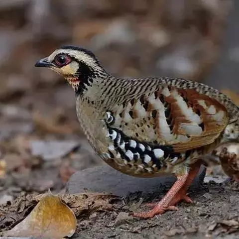 褐胸山鹧鸪(学名:Arborophila brunneopectus):雄鸟体长22厘米,体重310克;雌鸟体长23厘米,体重220-275克。前额皮黄白色,头顶橄榄褐色。眼部的裸皮鲜红色,有一条宽阔的皮黄白色眉纹一直延伸到颈的侧部。上体亮橄榄褐色,具黑色横斑。颏、颊、喉等皮黄白色或白色。胸和两胁淡褐皮黄色,两胁还具白色和黑色斑点。腹部白色。虹膜暗褐色,嘴黑褐色,腿、脚淡红色。