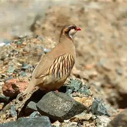 • 体大的灰褐色鹑类。胸灰色具黑色细纹。与相似种类四川雉鹑不同处在于栗色喉块外缘近白。有猩红色眼周裸皮。…