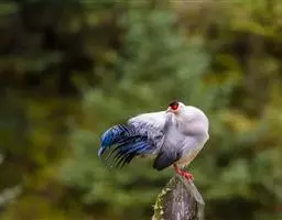 • 蓝鹇是雉科、鹇属一种大型雉类。体长50-80厘米。雄鸟头颈黑色,羽冠白色,有时杂以黑斑;脸红色,…