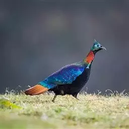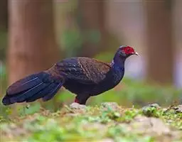 • 黑长尾雉大型鸡类,体长53~88厘米。雄较雌大。雄鸟通体紫蓝色,脸鲜红色,翅上有一条显著的白色翅斑…