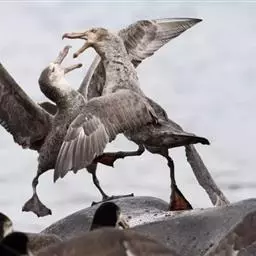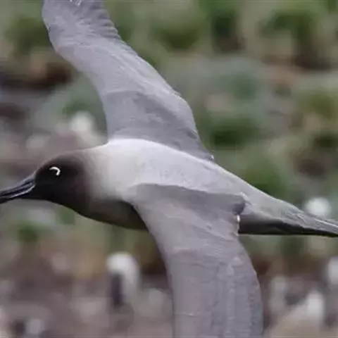 黑背信天翁:是一种中等体型的信天翁,81厘米长,体重2210-2800克,是一种有极长翼羽的大鸟,…