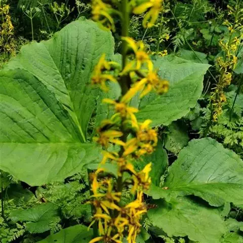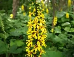 圆锥状总状花序或总状花序长达20厘米,常疏离;苞片披针形至线形,有时长于花序梗,长达8厘米;花序梗长达10.5厘米,一般长0.5-3厘米;头状花序多数,辐射状,常偏向花序轴的一侧;小苞片线状钻形;总苞陀螺形,基部尖,长5-14毫米,宽5-15(20)毫米,总苞片7-9,2层,卵形或披针形,宽2-7毫米,先端急尖,背部光滑,内层边缘膜质。舌状花黄色,舌片宽椭圆形或卵状长圆形,长7-14毫米,宽3-6毫米,先端急尖,管部长约2毫米;管状花多数,长5-6毫米,管部长约1毫米,冠毛白色与花冠等长。