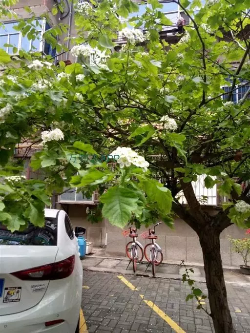 山里红(学名:Crataegus pinnatifida var. major N. E. Brown)是蔷薇科,山楂属山楂的变种,落叶乔木,植株生长茂盛。高达6米,树皮粗糙,小枝圆柱形,冬芽三角卵形,紫色。叶片宽卵形或三角状卵形,稀菱状卵形,叶片大,分裂较浅;裂片卵状披针形或带形,托叶草质,边缘有锯齿。伞房花序具多花,苞片膜质,线状披针形,萼筒钟状,花瓣倒卵形或近圆形,白色;花药粉红色;果实近球形或梨形,深红色,有浅色斑点;花期5-6月,果期9-10月。