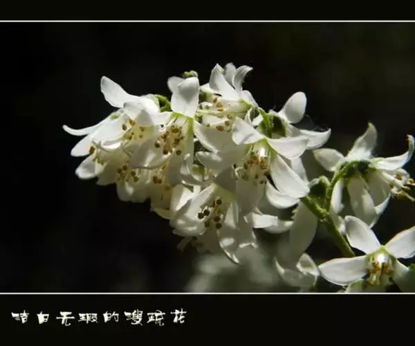 聚伞花序长和直径均1~3cm,具花(1~) 2~3朵;花蕾长圆形;花冠直径2~2.5cm;花梗长1~2mm,被星状毛;萼筒浅杯状,高约2.5mm,直径约4mm,密被灰黄色星状毛,有时具中央长辐线,裂片线状披针形,较萼筒长,宽1~1.5mm,被毛较稀疏;花瓣白色,长圆形或倒卵状长圆形,长约1.5cm,宽约7mm,先端圆形,中部以下收狭,外面被星状毛,花蕾时内向镊合状排列;外轮雄蕊长6~7mm,花丝先端2齿,齿平展或下弯成钩状,花药卵状长圆形,具短柄,内轮雄蕊较短,形状与外轮相同;花柱3(~4),约与外轮雄蕊等长。