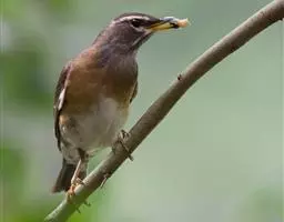 白眉歌鸫,是雀形目鸫科鸫属鸟类。体型略小并具有褐色斑点的歌鸫,上体橄榄褐色,眉纹白色,脸部斑驳,…