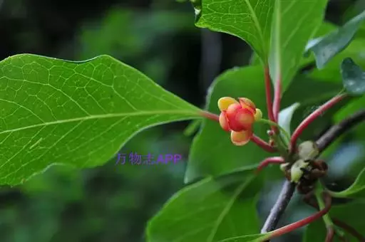 花生于近基部叶腋,花梗纤细,长2-4.5厘米,基部具长3-4毫米的膜质苞片,花被片5-9,橙黄色,近相似,椭圆形或长圆状倒卵形,中轮的长6-12毫米,宽4-8毫米,具缘毛,背面有腺点。雄花:雄蕊群倒卵圆形,径4-6毫米;花托圆柱形,顶端伸长,无盾状附属物;雄蕊11-19(23),基部的长1.6-2.5毫米,药室内侧向开裂,药隔倒卵形,两药室向外倾斜,顶端分开,基部近邻接,花丝长约1毫米,上部1-4雄蕊与花托顶贴生,无花丝;雌花:雌蕊群卵球形,直径5-5.5毫米,雌蕊30-60枚,子房近镰刀状椭圆形,长2-2.5毫米,柱头冠狭窄,仅花柱长0.1-0.2毫米,下延成不规则的附属体。聚合果果托长6-17厘米,径约4毫米,聚合果梗长3-10厘米,成熟小桨红色,长8-12毫米,宽6-9毫米,具短柄;种子长圆体形或肾形,长约4毫米,宽3-3.8毫米,高2.5-3毫米,种脐斜V字形,长约为种子宽约1/3;种皮褐色光滑,或仅背面微皱。花期4-7月,果期7-9月。
