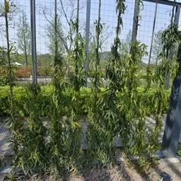 架式:华中五昧子为多年生缠绕性藤本植物,喜光照,不耐隐蔽,要搭架栽培。架型通常有篱架和大棚架。篱架前期投资少,但产量低,内膛透光不良,劣质果多,树势易早衰;大棚架早期投资大,但丰产稳产,优良果多,宜长期栽培,应用广泛。本技术以棚架为基础,宜采用棚架(T型),架高1.7-1.8米,架线3-4条,间距60厘米。