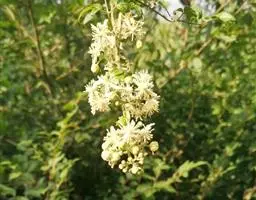 圆锥状聚伞花序腋生或顶生,常比叶短;花梗长1-1.5厘米,有短柔毛;花直径1.5-2厘米;萼片4,开展,白色,狭倒卵形,长约8毫米,两面均有短柔毛,内面较疏或近无毛;雄蕊无毛,花药长2-2.5毫米。