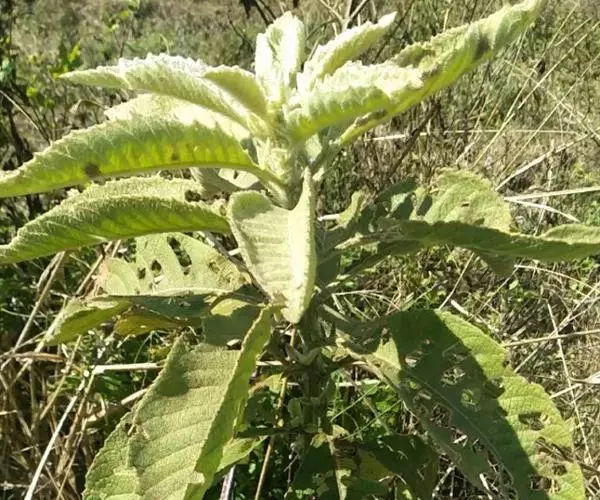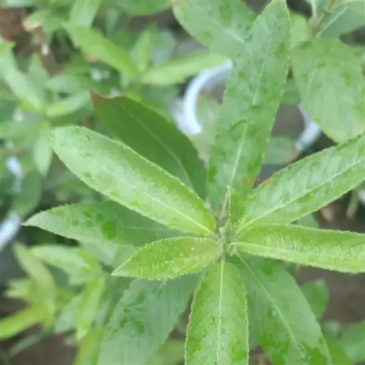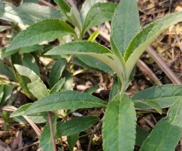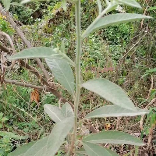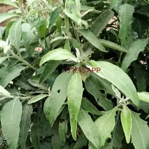 叶:下部叶宽椭圆形或长圆状披针形,长22-25厘米,宽8-10厘米,基部渐狭,具柄,柄两侧有3-5对狭线形的附属物,顶端短尖或钝,边缘有细锯齿,上面被柔毛,下面被淡褐色或黄白色密绢状棉毛,中脉在下面凸起,侧脉10-15对,弧状上升,不抵边缘,有不明显的网脉;上部叶长圆状披针形或卵状披针形,长7-12厘米,宽1.5-3.5厘米,基部略尖,无柄或有短柄,柄的两侧常有1-3对狭线形的附属物,顶端渐尖,全缘、具细锯齿或羽状齿裂,侧脉斜上升,通常与中脉成锐角。