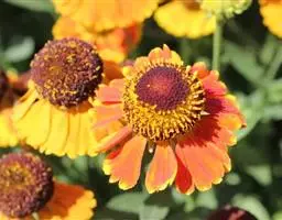 花:头状花序多数,径5-8毫米,排列成开展具叶的大圆锥花序;花序梗长5-8毫米,被黄褐色密柔毛;总苞钟形,长约7毫米,稍长于花盘;总苞片约6层,草质,外层长圆形,长1.5-2.5毫米,顶端钝或短尖,背面被密柔毛,中层线形,顶端略尖,背面被疏毛,内层长于外层4倍;花托蜂窝状,径2-3毫米,无毛。花黄色,雌花多数,花冠细管状,长约6毫米,檐部2-4齿裂,裂片无毛;两性花较少数,与雌花几等长,花冠管状,向上渐宽,檐部5齿裂,裂片卵形,短尖,被短柔毛。