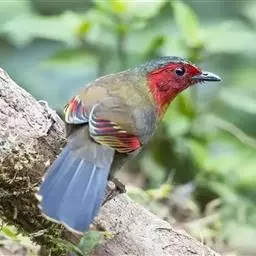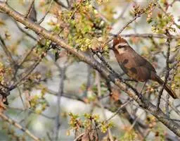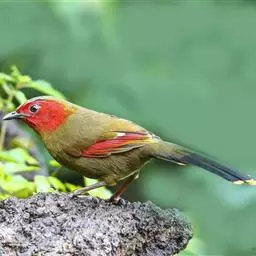 红翅薮鹛是噪眉科、薮鹛属中型鸟类,体长21-24厘米。头顶灰褐色,头侧和颈侧赤红色,上体橄榄褐色,…